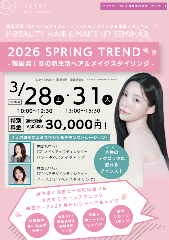 3月31日開催 10:00~12:00の2026 SPRING TREND -韓国発!春の新生活へア&メイクスタイリング- の申込画面です。