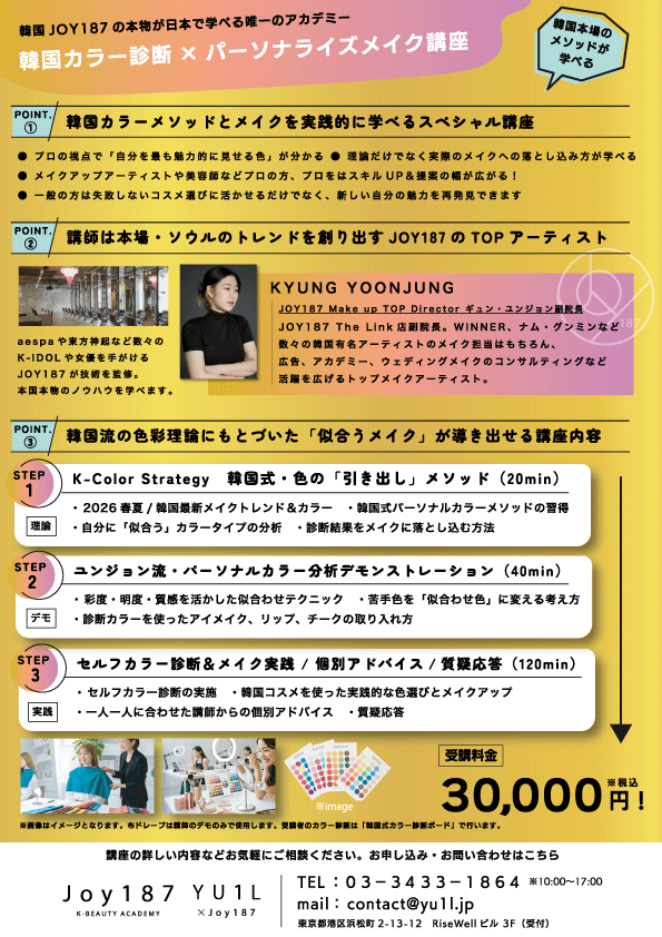 【JOY187】4月30日(木)開催 韓国式パーソナルカラー診断+パーソナライズメイク講座